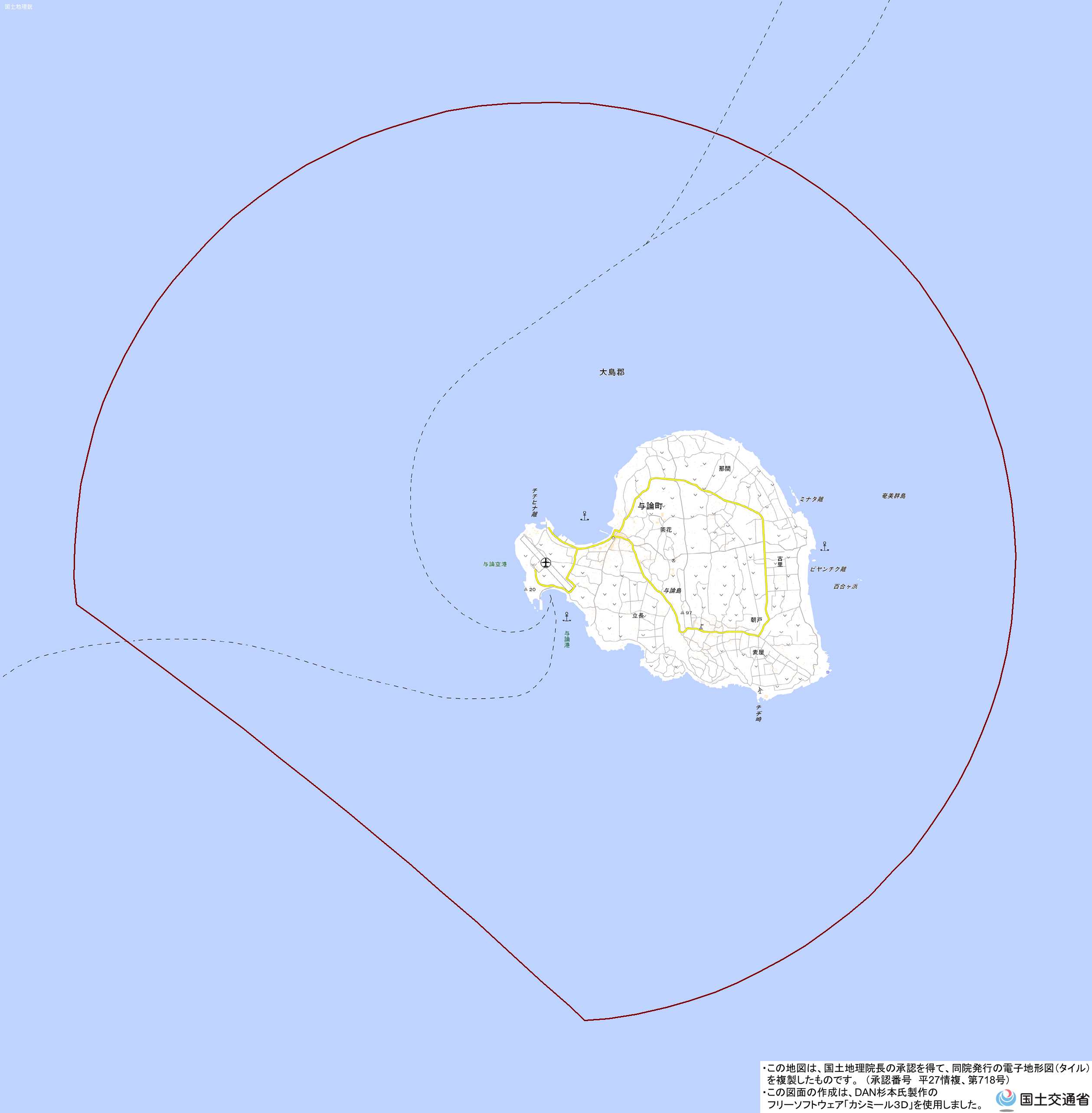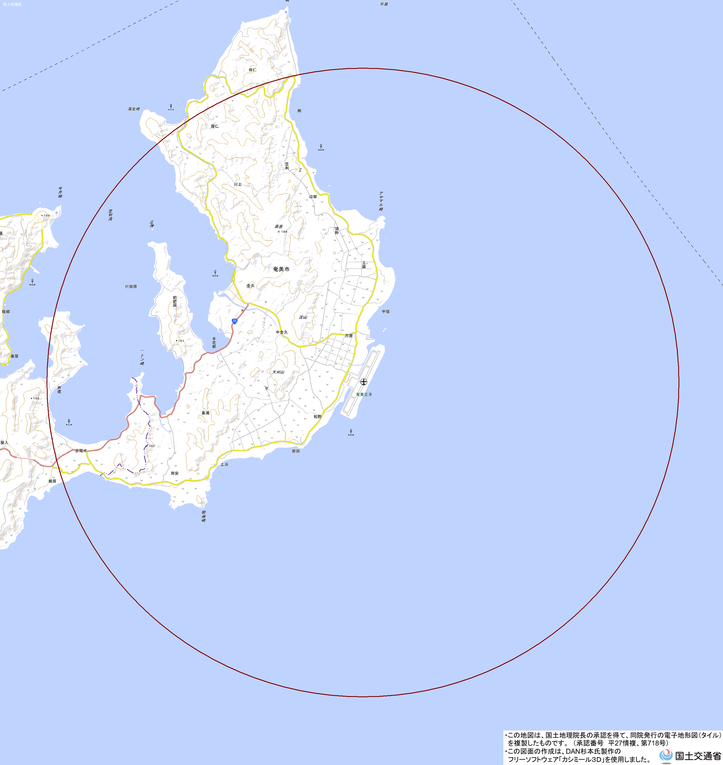 地理院地図)<大島支庁建設部建設課 TEL:0997-57-7332>