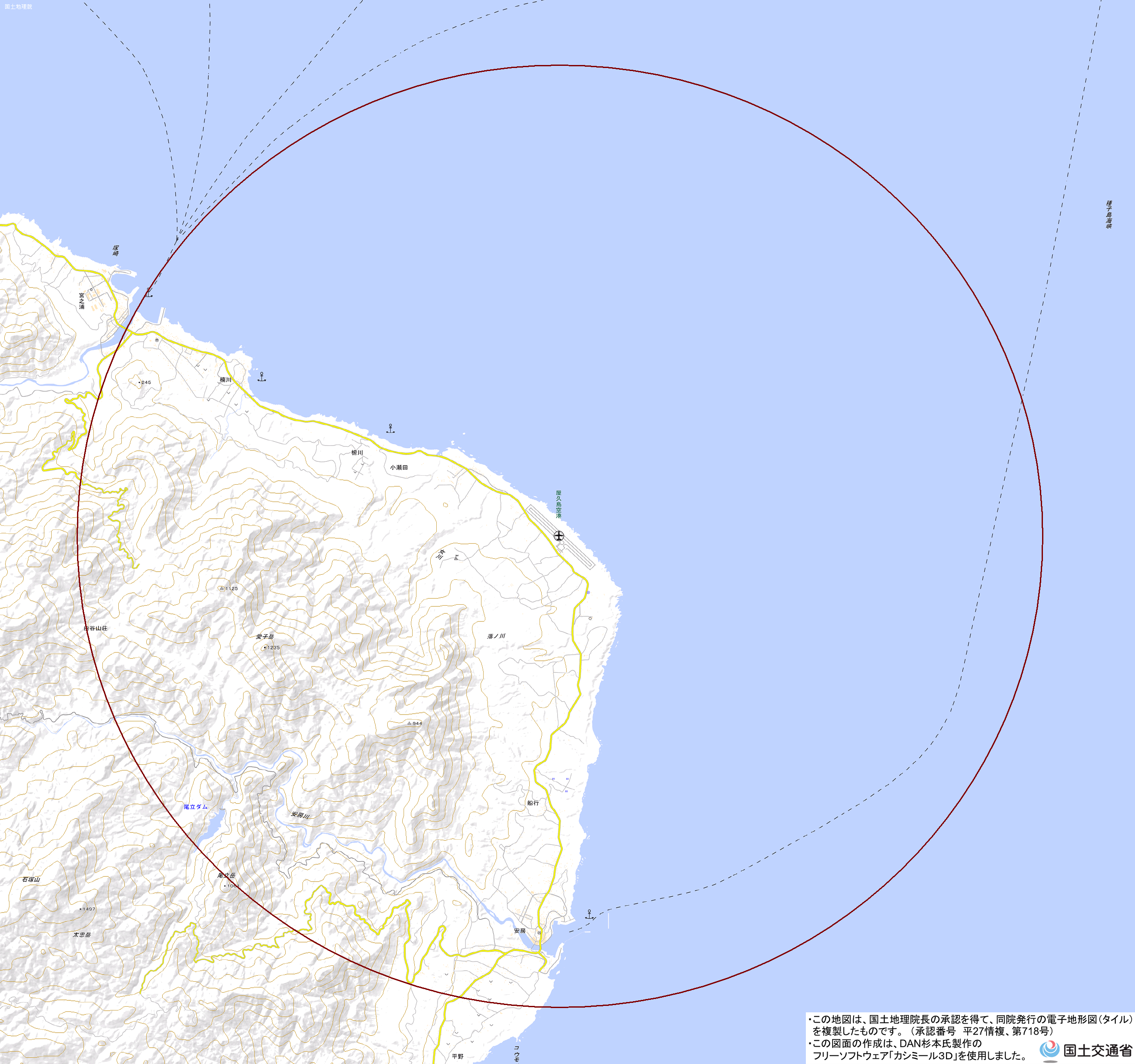 地理院地図)<熊毛支庁屋久島事務所総務企画課 TEL:0997-46-2211>