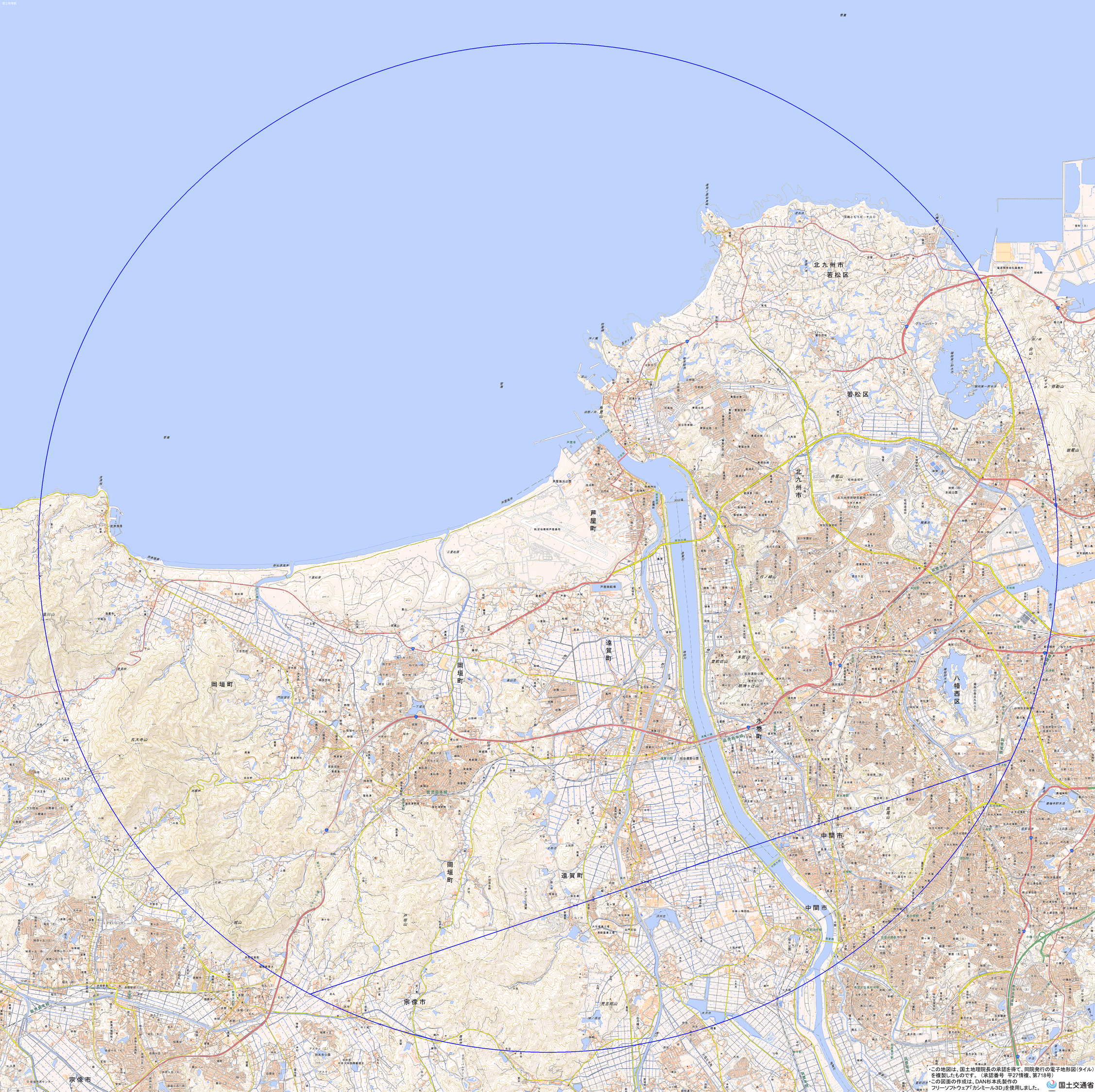 地理院地図) <大阪航空局北九州空港事務所 TEL:093-473-1089>