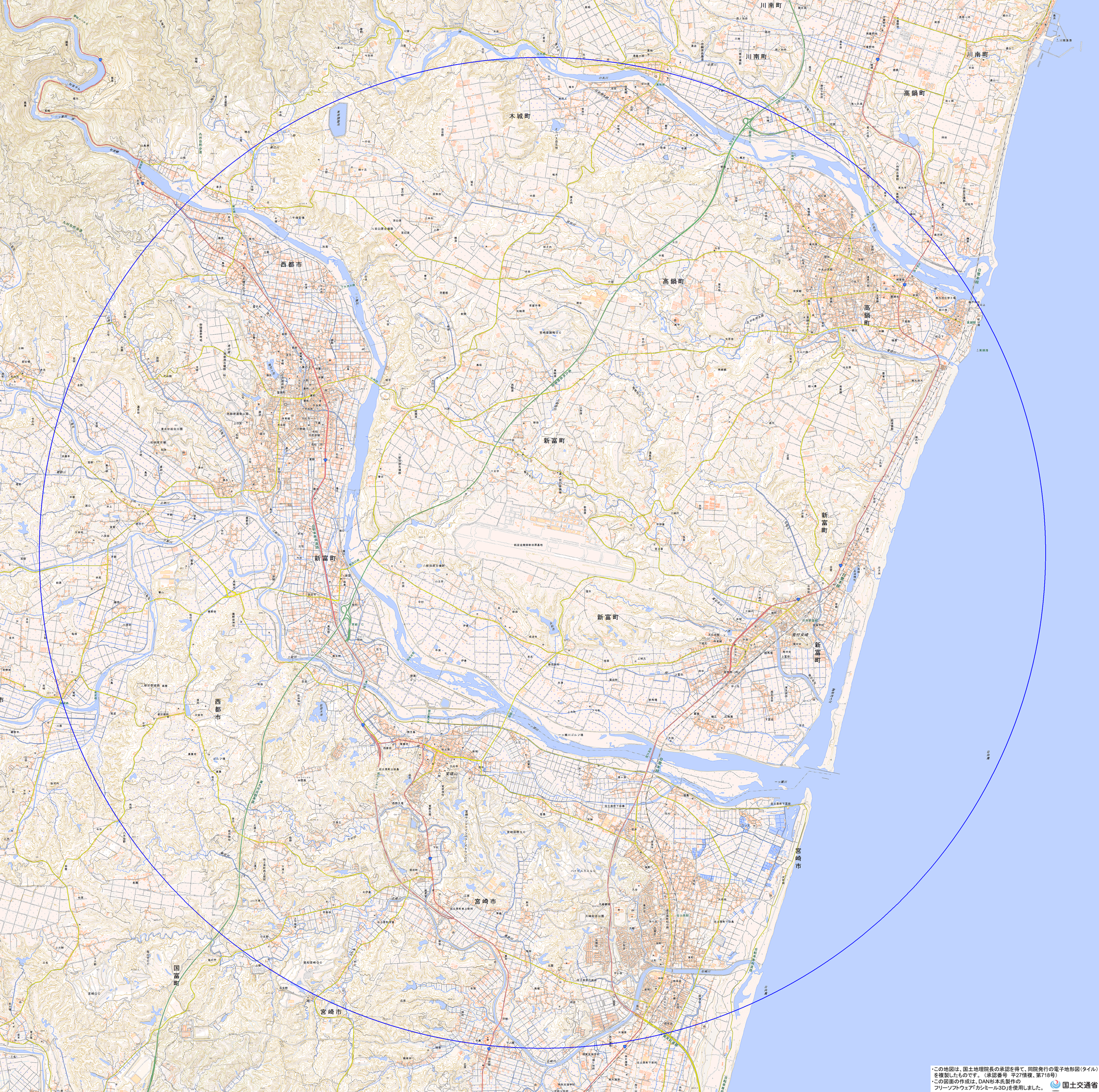 地理院地図) <大阪航空局宮崎空港事務所 TEL:0985-51-3223>