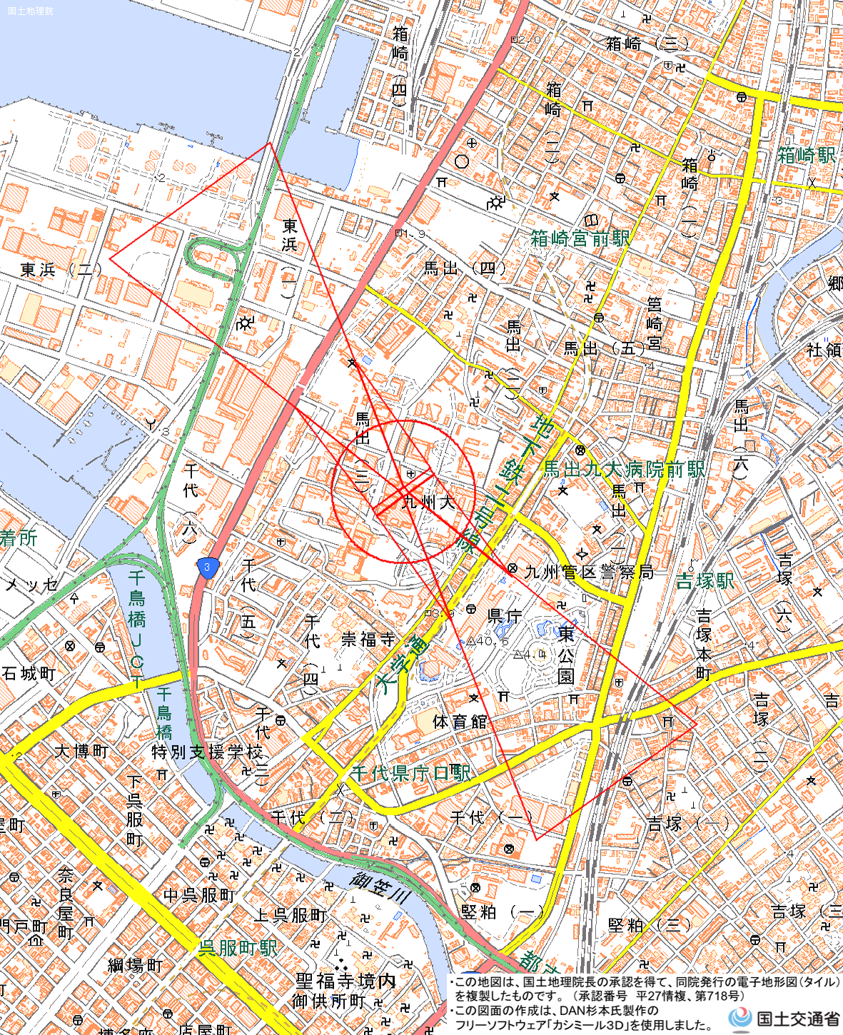 地理院地図) <NHK福岡放送局放送部 TEL:092-724-2800>