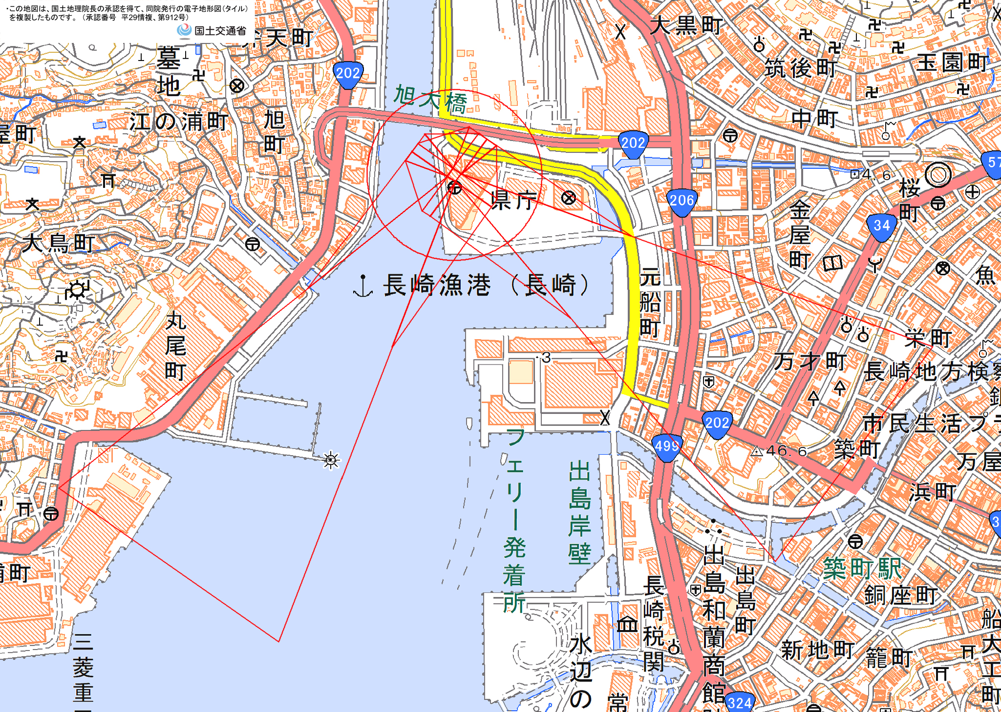 地理院地図) <長崎県庁総務部管財課 TEL:095-895-2181>