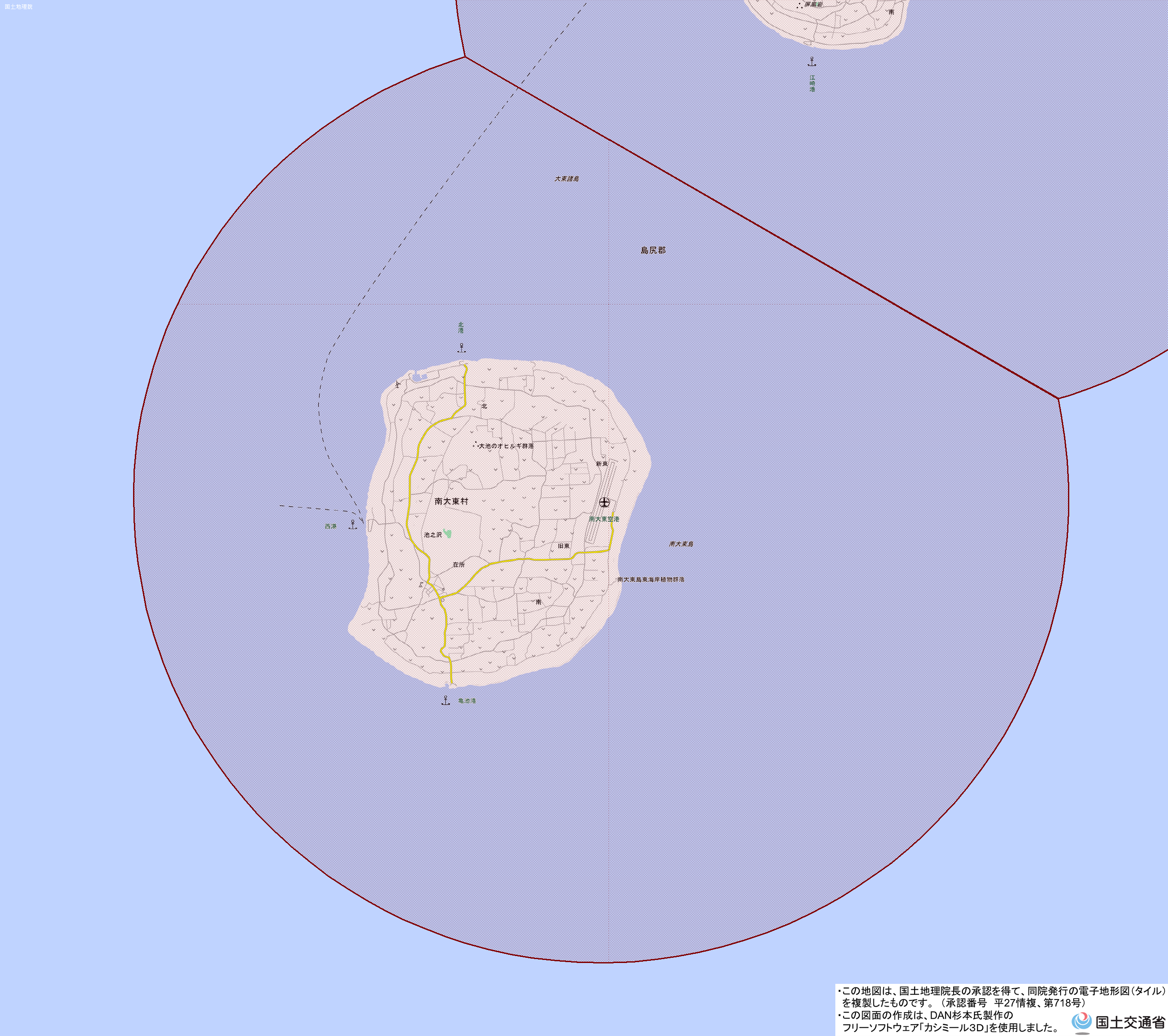 地理院地図) <南大東空港管理事務所 TEL:09802-2-2716>