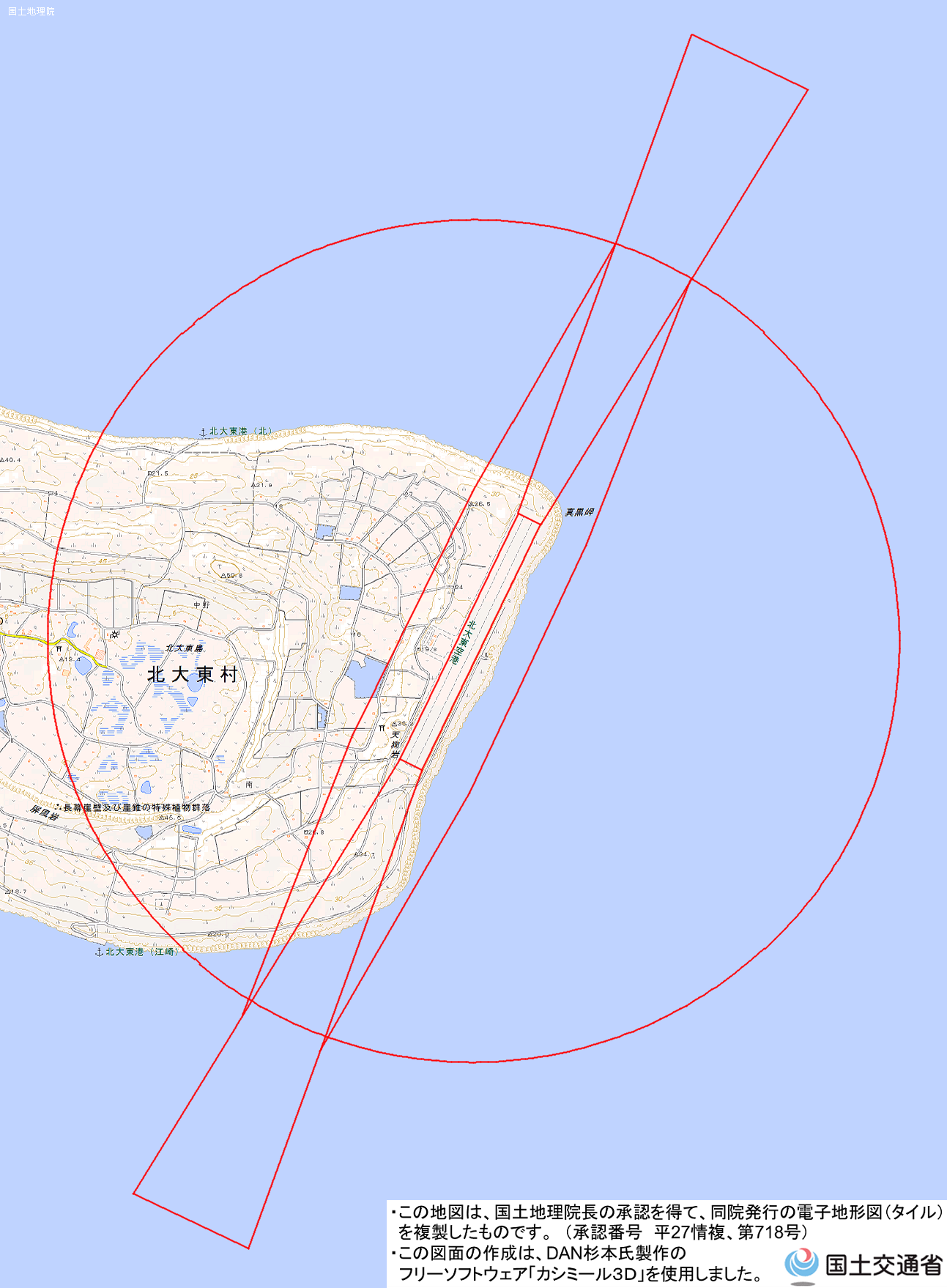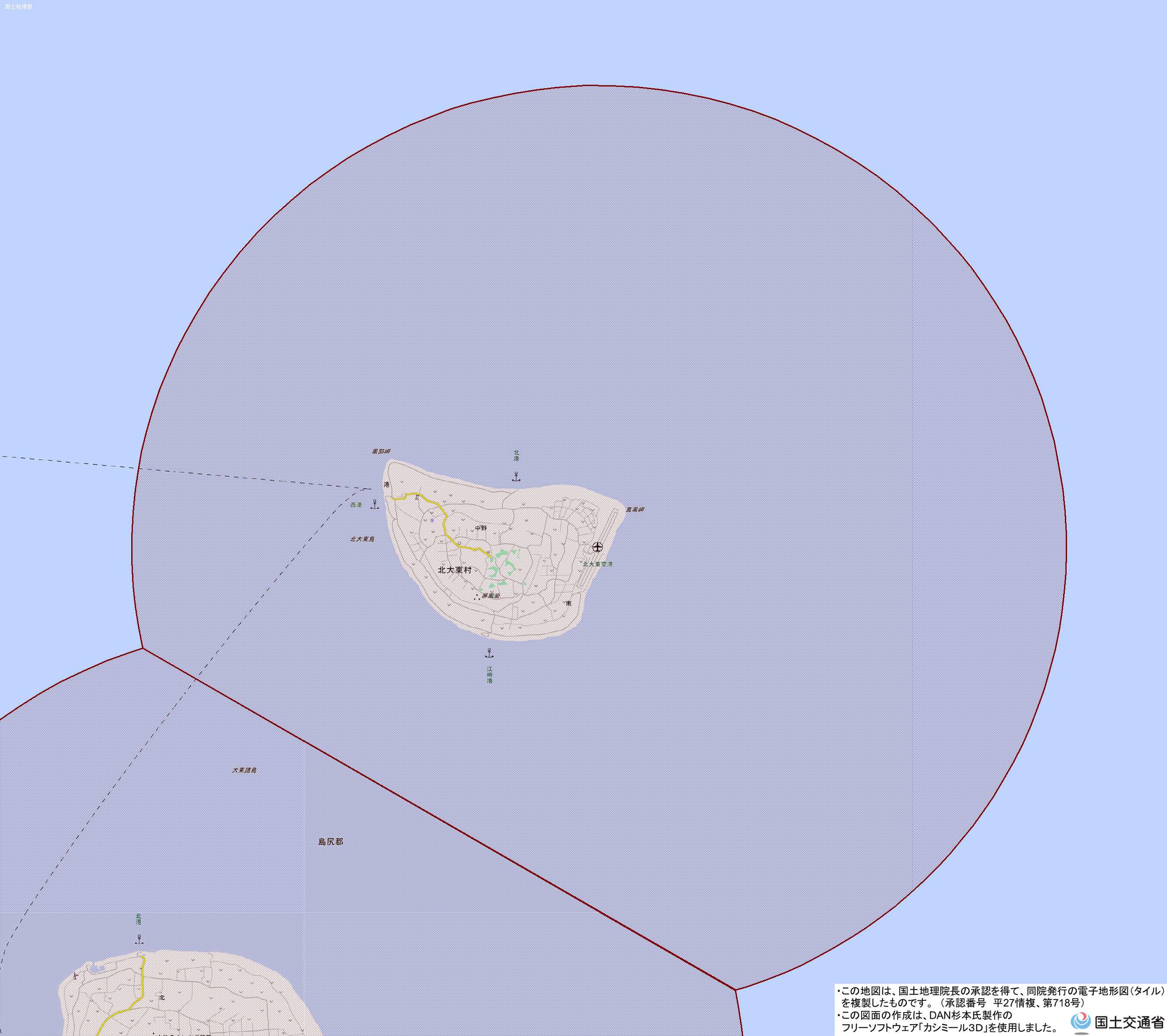 地理院地図) <北大東空港管理事務所 TEL:09802-3-4016>