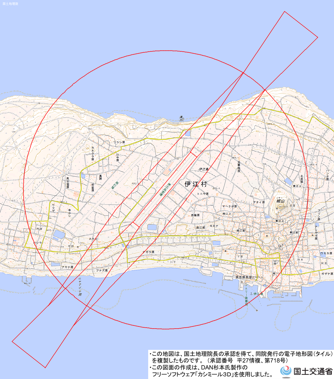 地理院地図) <伊江島空港管理事務所 TEL:0980-49-2001>