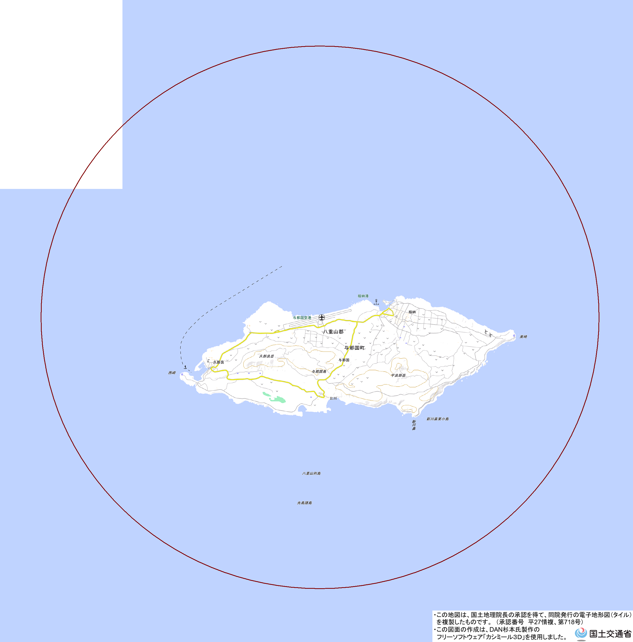 地理院地図) <与那国空港管理事務所 TEL:0980-87-2831>