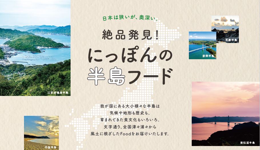 『JALショッピング』に半島の食の特集ページ「HANTO DELICIOUS(半島デリシャス)」では厳選した12半島を「JALふるさと応援隊」がナビゲーターとなり、オススメの食をご紹介しています。