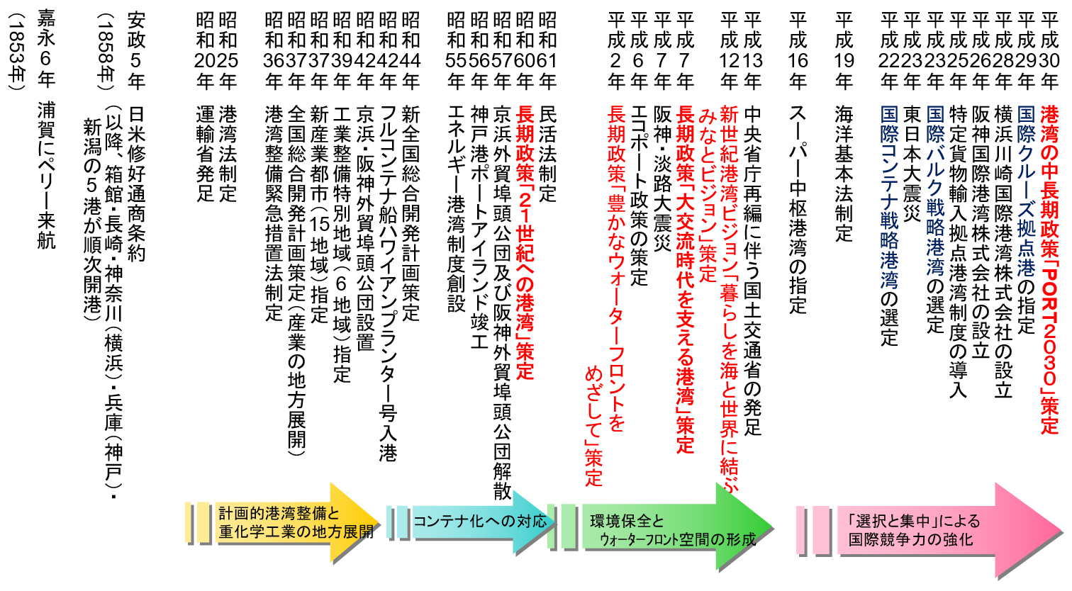 すべき役割や、今後特に推進すべき港湾政策の方向性等を、「港湾の中長期政策『PORT2030』」とし