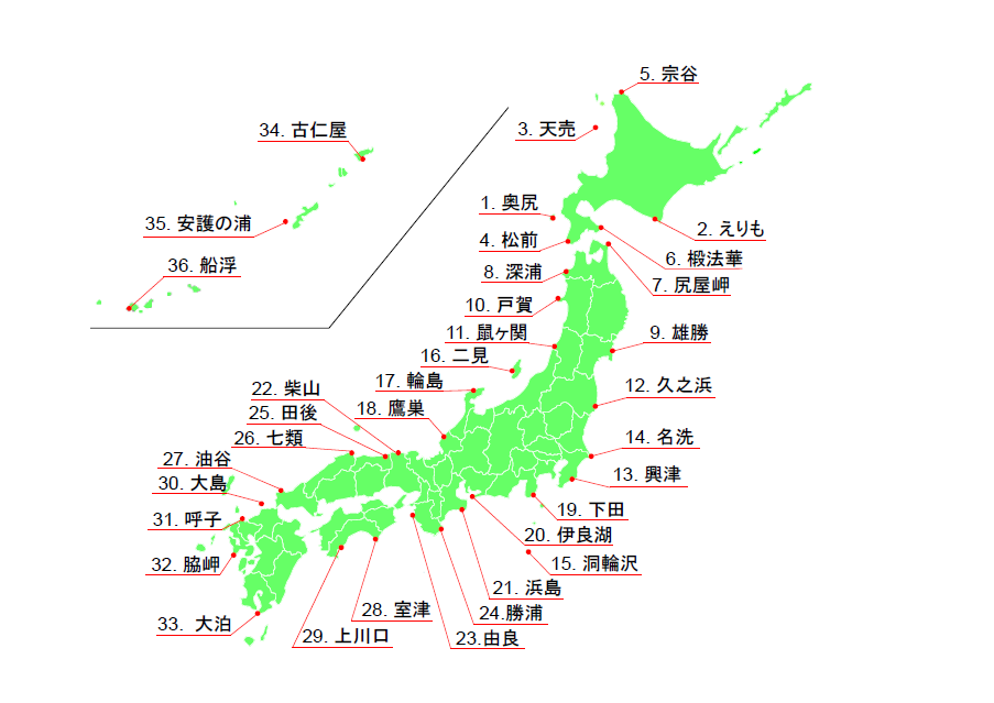 | 8 | 青森県 | 深浦港 (ふかうら) |