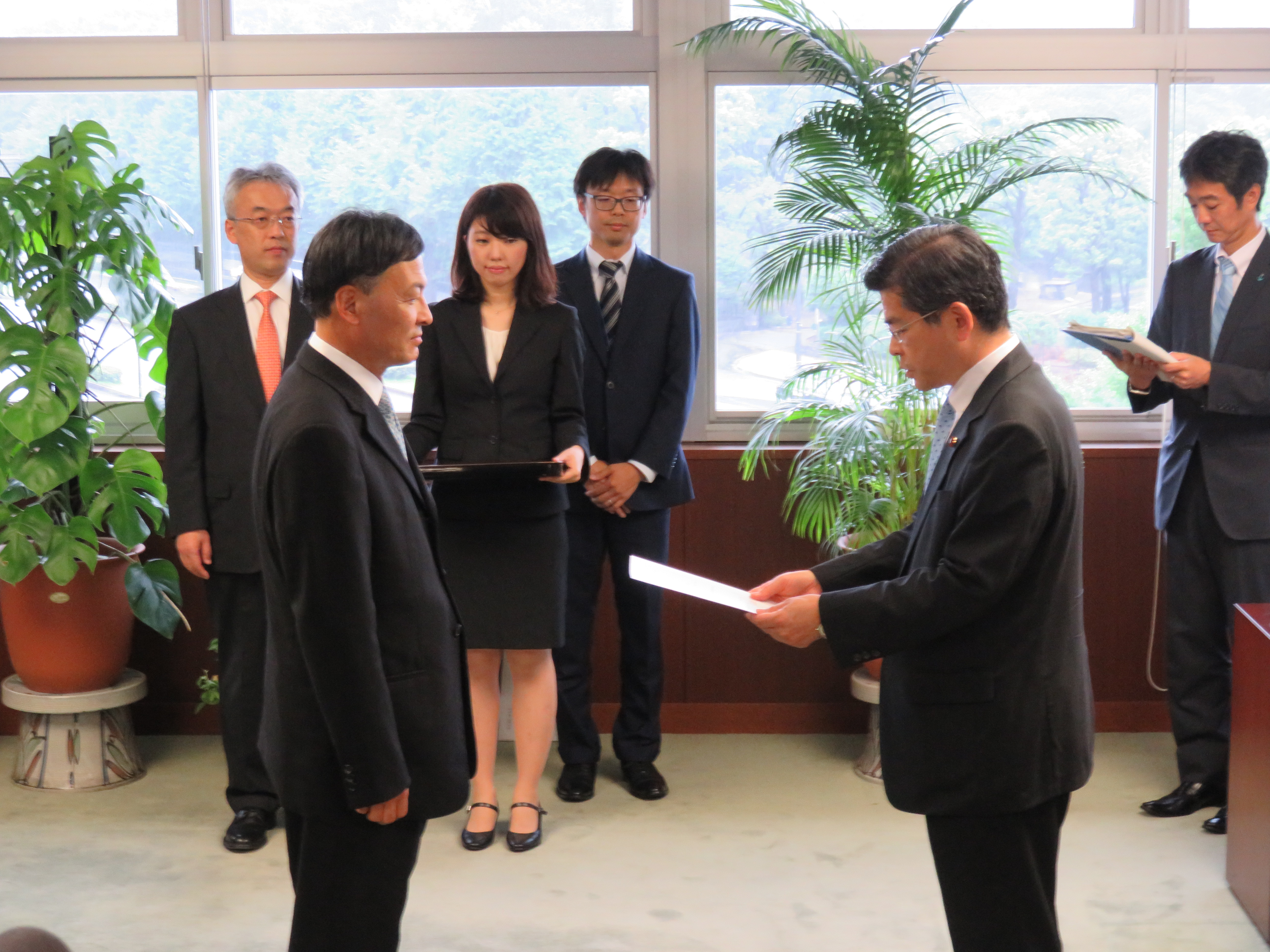 石井大臣から難波静岡県副知事に指定書を交付