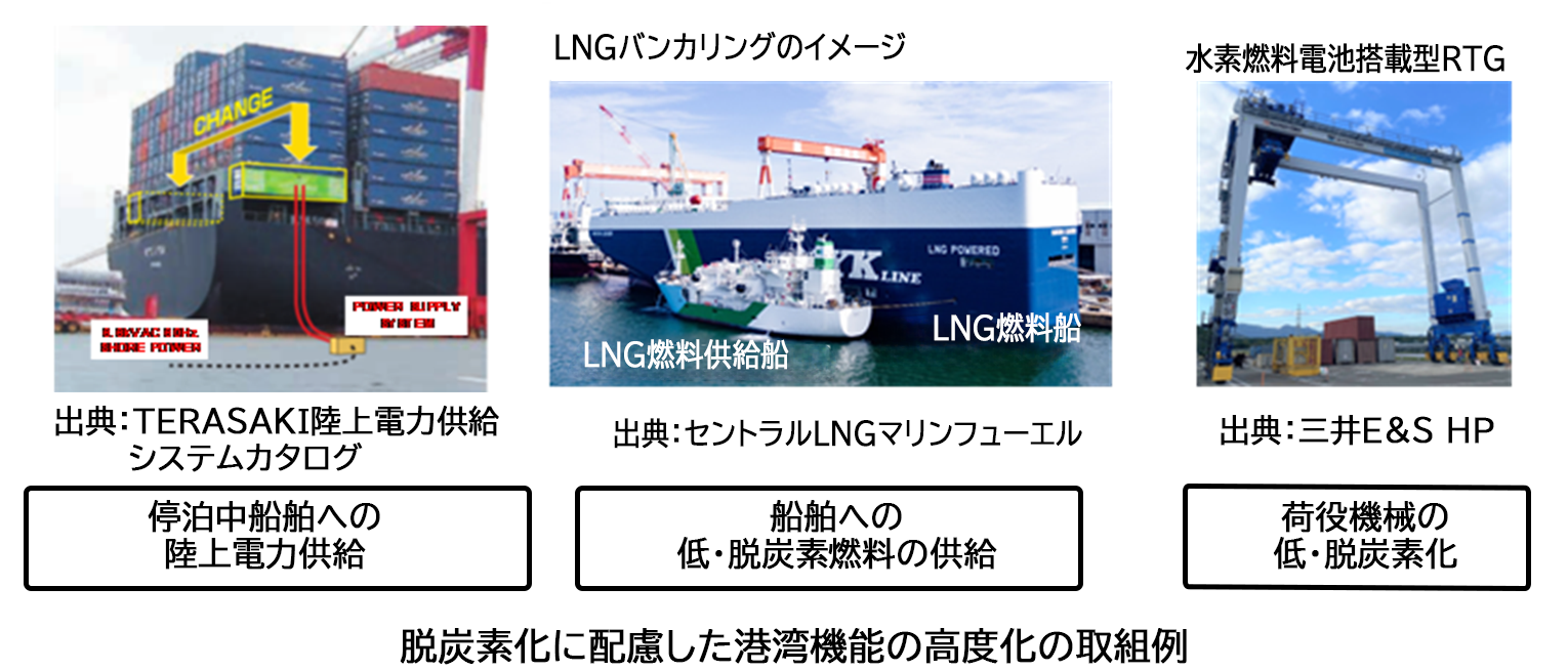 荷主や船社から選ばれる競争力のある港湾を形成するため、脱炭素化に配慮した港湾機能の高度化を図る取組を官民が連携して進めています。