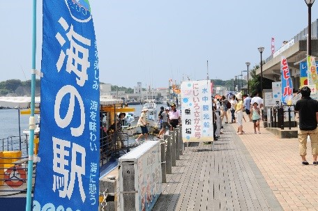 「海の駅」は、誰でも、気軽に、安心して、楽しめる施設であり、車で陸から、プレジャーボートで海から、どちらからでもアプローチできるマリンレジャー拠点です。来訪者のための一時係留設備(ビジターバース)、トイレ、マリンレジャーに関する情報提供のための施設のほか、ホテルやレストラン等の施設を併設したところもあり、地域観光の足がかりとしても利用されています。また、レンタルボート等を利用したクルージングや、各種マリンイベントの開催、朝市による海産物等の販売、地元漁船等を活用した漁業体験など、地域の特性を活かした取り組みが実施されています。