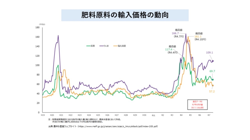 また、2021年半ば以降、穀物需要の増加や原油・天然ガス価格の上昇や、中国による肥料原料の輸出検査の厳格化等に伴い、肥料原料の国際価格が高騰しました。