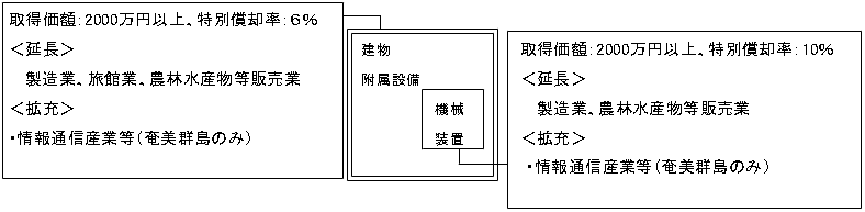 (延長)製造業、旅館業(過疎に類する地区のみ)及び農林水産物等販売業の用に供する設備の特別償却(機械・装置 10%、建物・附属設備 6%)