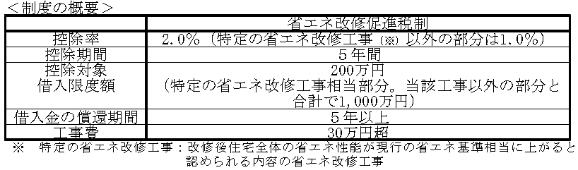 ※1 一定の省エネ改修工事:[1]全ての居室の窓全部の改修工事、又は[1]の工事と併せて行う、[2]床の断熱工事、[3]天井の断熱工事、[4]壁の断熱工事、[5]太陽光発電装置設置工事([1]~[4]については、改修部位の省エネ性能がいずれも平成11年基準以上となるもの、[5]については一定のものに限る。)であって、その工事費用の額が30万円を超えるもの。