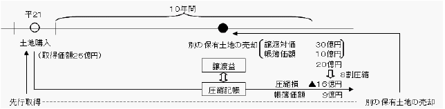 減額相当額は、先に取得した土地の価額を圧縮記帳することにより課税を繰り延べる。