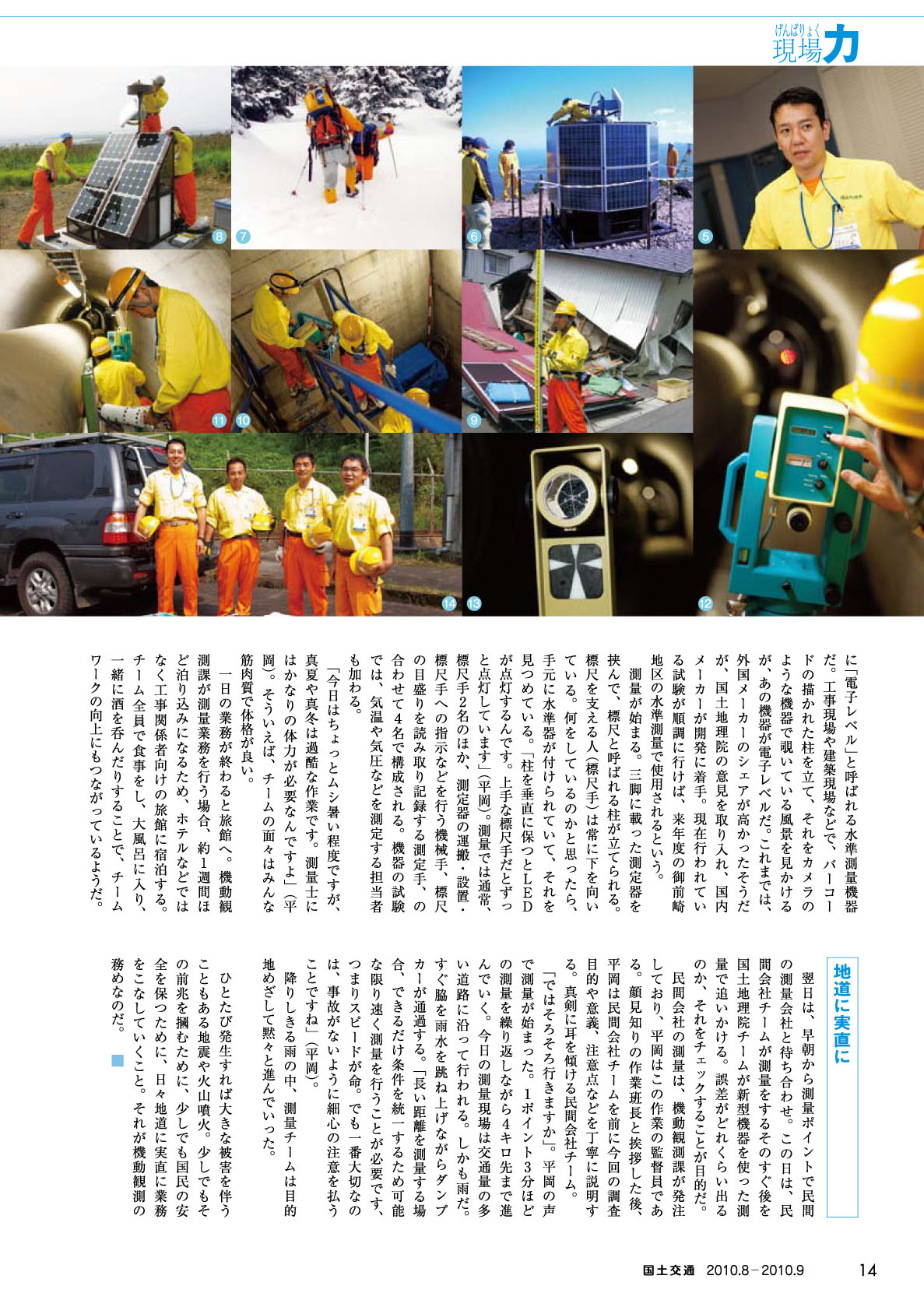 「国土交通」No.104(2010.8-2010.9) 業務密着 ルポシリーズ 「現場力 File 5 国土地理院 機動観測課」