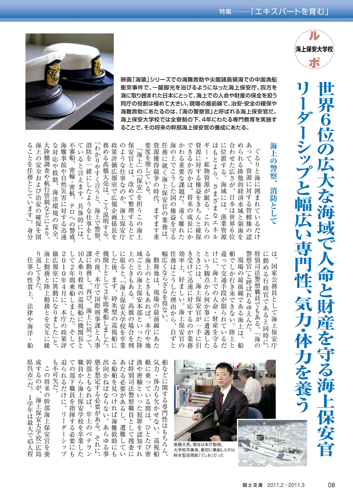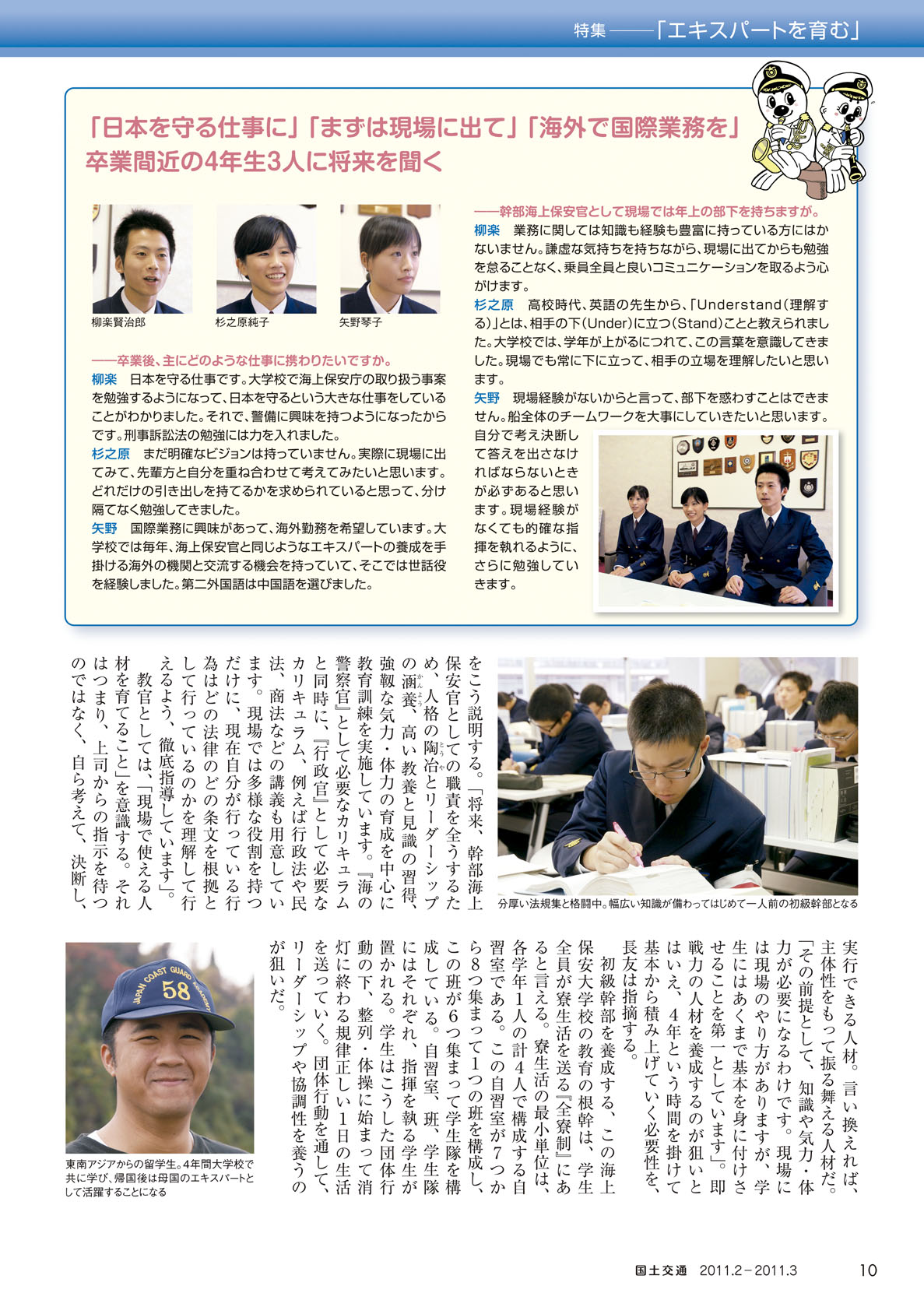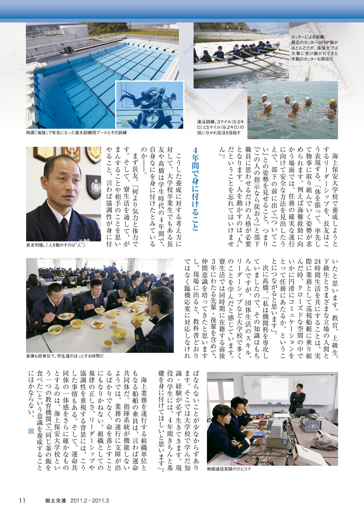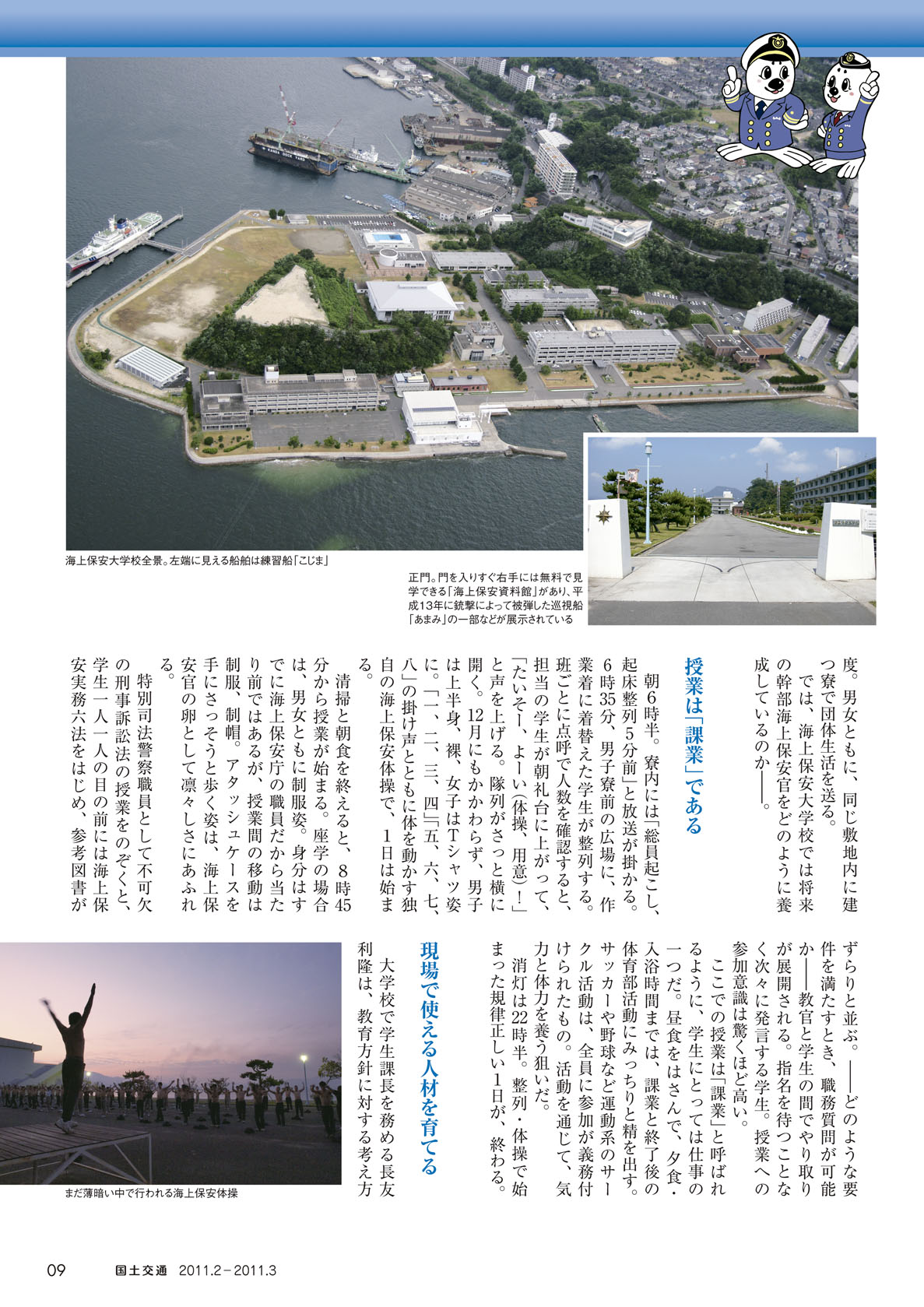 「国土交通」No.107 (2011.2-2011.3) 「エキスパートを育む」 ルポ 海上保安大学校