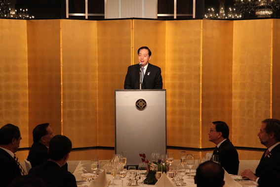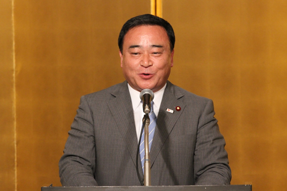 (公式ディナーで締め括りの挨拶をされる梶山副大臣)