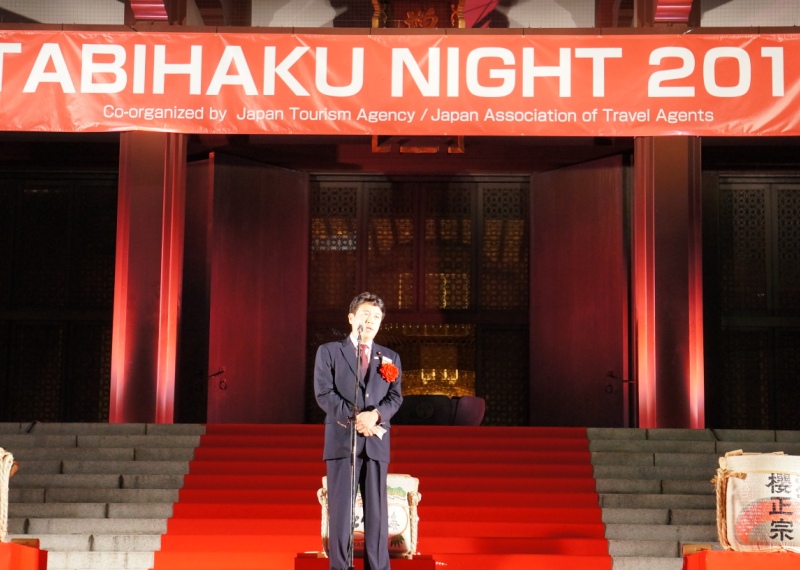 9月12日(木)、一般社団法人日本旅行業協会(JATA)と観光庁が共催した「TABIHAKU NIGHT 2013」に鶴保副大臣が出席し、開会の挨拶を行いました。