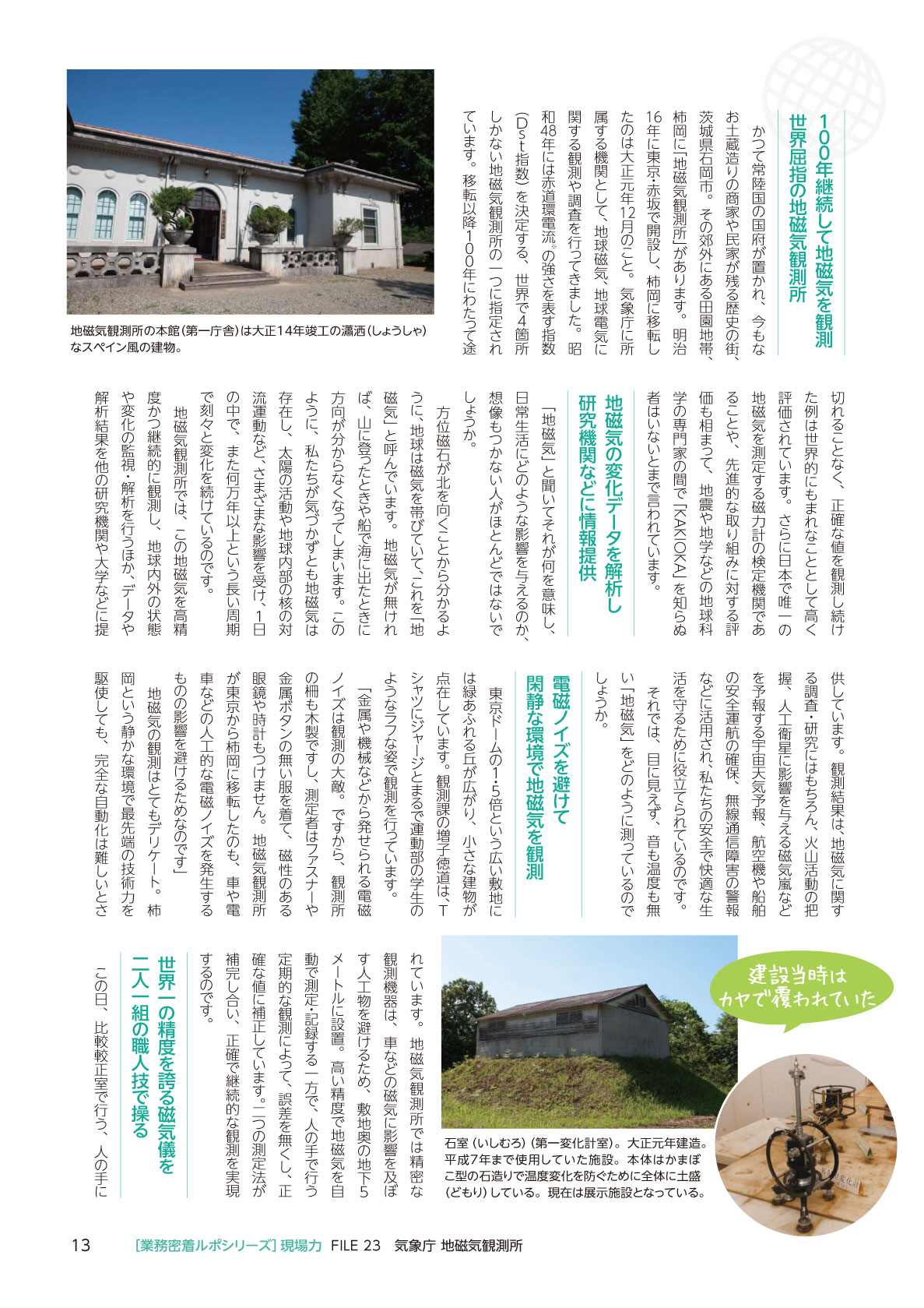 「国土交通」No.122(2013.10-11) 現場力 気象庁 地磁気観測所
