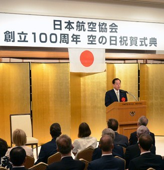 この式典は、大正2年(1913年)に日本航空協会の前身となる帝国飛行協会が創立されて100周年を記念して開催されたものです。同式典は、秋篠宮同妃両殿下御臨席のもと執り行われ、来賓として出席した太田国土交通大臣は、現在の航空の発展は、日本航空協会をはじめとする関係各位の尽力であるとして感謝と敬意を表し、「今後も航空は、人々の営みや活動を支える交通手段として、一層重要な役割を果たしていく。国土交通省としても航空の更なる発展に尽力していく」と祝辞を述べました。