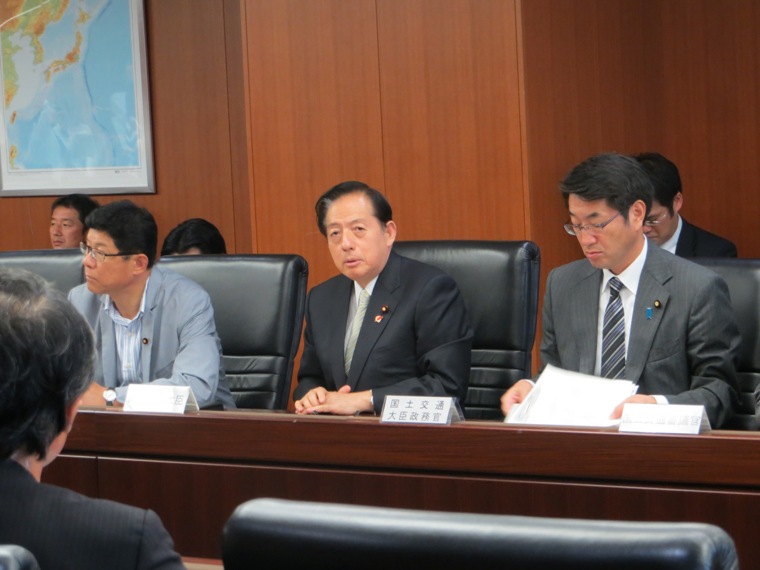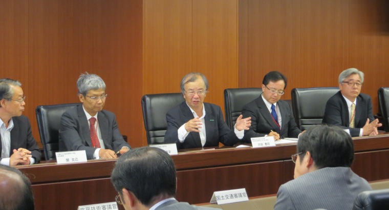 10月9日、米国ハリケーン・サンディに関する国土交通省・防災関連学会合同調査団(団長:河田惠昭関西大学教授)から、緊急メッセージの報告が行われました。太田国土交通大臣、髙木国土交通副大臣、中原国土交通大臣政務官が出席し、大規模な浸水の発生を前提とした事前段階からの災害対応の行動計画の重要性などについて意見交換を行いました。