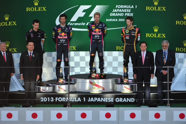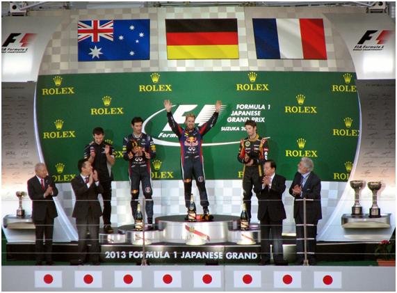 F1は、国際自動車連盟(FIA)が主催する自動車レースの最高峰レースで、今年は世界各地で19戦行われます。鈴鹿サーキットでの開催は、今年で25回目となりました。また、鈴鹿サーキットでの25回目の開催を祝して、特別ゲストとして、世界的テノール歌手で来日中のプラシド・ドミンゴ氏(スペイン)もコンストラクター優勝プレゼンターとして参加しました。