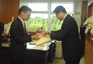 平成25年10月17日(木)、高木国土交通副大臣室にて、『私たちの主張~未来を創造する建設業~』国土交通大臣賞の表彰式が行われました。