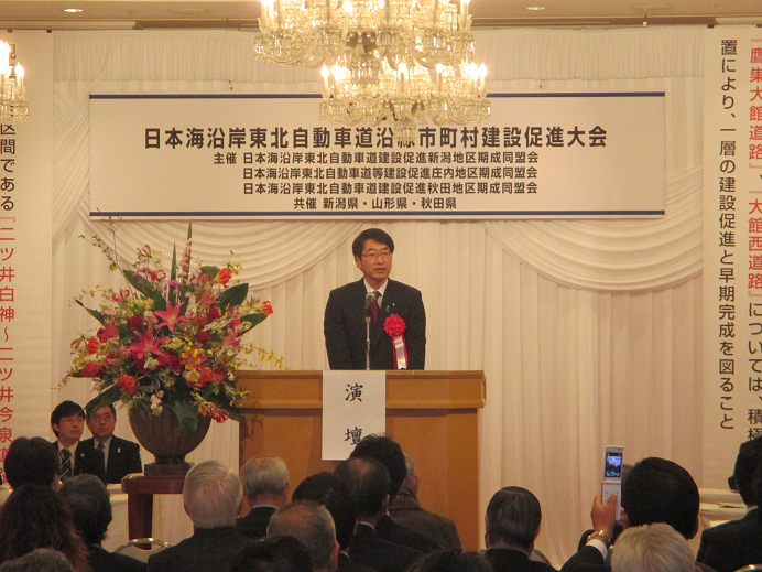 【平成25年11月7日 新着情報】 日本海沿岸東北自動車道沿線市町村建設促進大会に中原政務官が出席