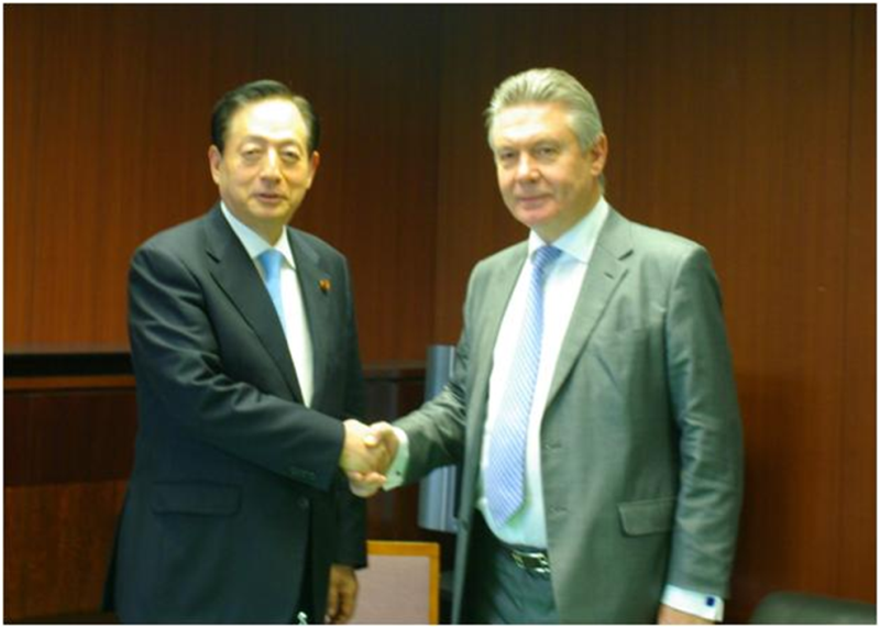 平成25年11月18日(月)、欧州連合(欧州委員会)カレル・デ・ヒュフト欧州委員(貿易担当)が太田大臣を訪問されました。