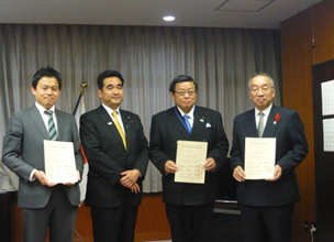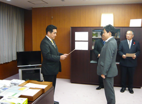それに伴い、坂井大臣政務官が主務大臣連名の認定証を堺市長、鶴岡市長、日南市長に交付致しました。