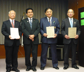 【平成26年2月14日 新着情報】 歴史的風致維持向上計画の認定式において、坂井大臣政務官が郡上市長、名古屋市長、斑鳩町長に対し、認定証を交付