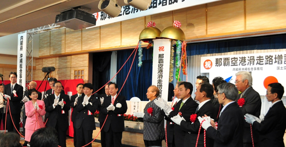 太田大臣は起工式で、「那覇空港の大幅な機能向上を実現する滑走路増設事業は、沖縄への人・物の流れを加速させ、振興・発展に大きく貢献できるものである。