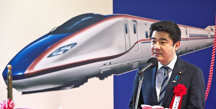 野上国土交通副大臣は冒頭の挨拶で、「E7系車両は、来年春の富山、金沢への延伸に先駆けて導入され、一足早く、最新型の新幹線を体感できるものであり、開業に向けた沿線地域の気運もますます高まる。」と述べるとともに、「首都圏と北陸・信越地域の結びつきをより一層深める架け橋になるものと期待している。」と述べました。