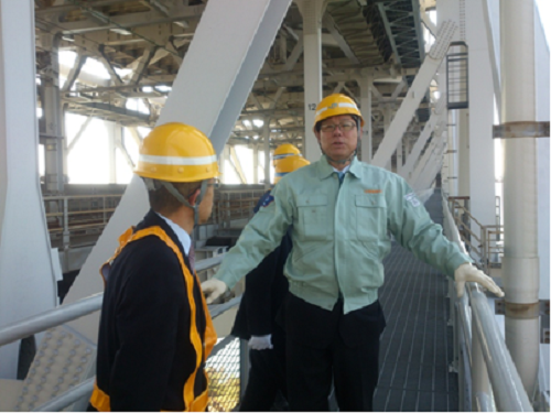 瀬戸大橋与島高架橋で耐震工事現場を視察