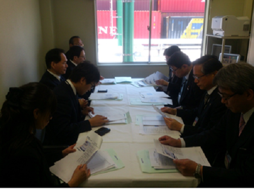 高松港コンテナターミナルにおいて浜田恵造香川県知事らと意見交換