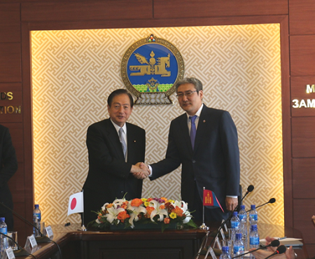 モンゴル ガンスフ道路運輸大臣との覚書締結