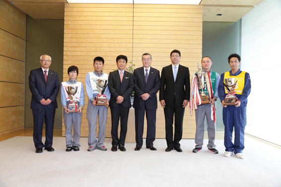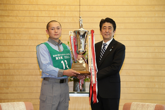 安倍総理から各部門の優勝者にトロフィーを授与して頂くとともに、ねぎらいの言葉を頂きました。