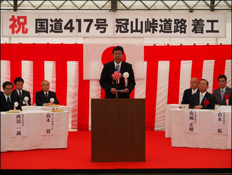 【平成26年5月17日】 国道417号冠山峠道路 着工式に高木国土交通副大臣が出席