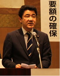 来賓として挨拶した野上副大臣は、「高度経済成長期に集中的に整備した橋梁やトンネル等の老朽化対策が喫緊の課題で、本格的にメンテナンスに取組む。また、道路は「命の道」であり、防災・減災の観点からも道路ネットワークの強化を推進したい。日本をどのように強くしていくのか、その鍵を握るのが道路であり、必要な道路整備を推進し、活力ある国づくりに取組みたい。」と述べました。
