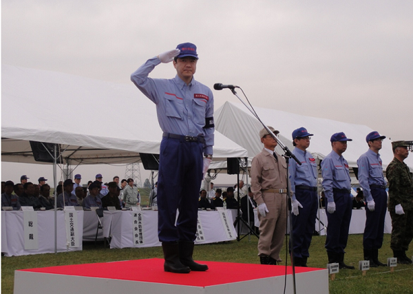 演習には約2,200人が来場し、警察・自衛隊等の関係機関や消防団、地元企業、自治会など多様な主体の参加のもと、水防工法訓練や、救出・救護訓練、特定緊急水防活動など、関係機関と連携した総合的かつ実践的な訓練を実施しました。