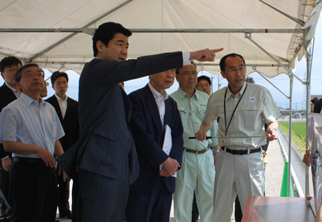 視察後、同日初開催の「東海・北陸地方間のネットワーク交通課題検討会」の冒頭挨拶で、『東海北陸道をはじめ国道41号、国道156号も含めた事故、渋滞、通行規制等の課題に対し、全体のネットワークとしてしっかりと検討していかなければならない。』と述べました。 整備中の南砺スマートICを視察する野上副大臣 検討会で冒頭挨拶をする野上副大臣