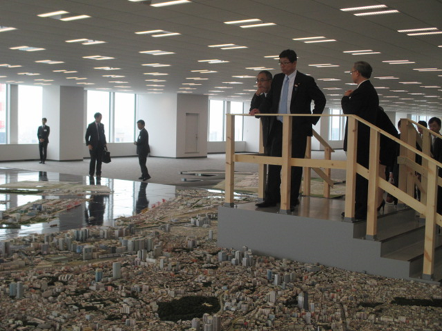 セレモニー後、虎ノ門ヒルズのホテル、商業施設や都心部の模型が展示してあるオフィスを視察しました。