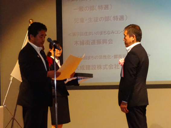 「まちづくりと景観を考える全国大会」は、「まちづくり月間」と「景観の日」の中央行事として開催されるもので、本大会において、まちづくり功労者国土交通大臣表彰、まちづくり法人国土交通大臣表彰、まちづくり月間関連4行事国土交通大臣表彰と都市景観大賞の表彰式が行われました。