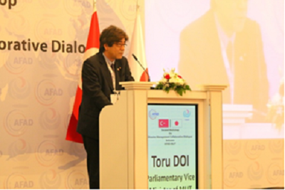 また、トルコで初めて行われる日・トルコ防災協働対話ワークショップに出席しました。同ワークショップは、両国から官民の関係者約120名が参加し、主に防災情報システムをテーマとして行われました。
