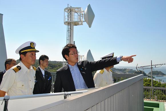 中原大臣政務官は、8月6日(水)、東京湾を航行する船舶に対して、情報提供及び航行管制を実施している東京湾海上交通センターを視察しました。 東京湾海上交通センターでは、業務概要の説明を受けた後、施設内及び東京湾の状況を視察するとともに、海上交通の安全について、意見交換をしました。