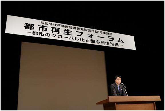 野上副大臣は、7月31日(木)、イイノホール&カンファレンスセンター(東京都千代田区)で開催された株式会社不動産経済研究所創立50周年記念「都市再生フォーラム-都市のグローバル化と都心居住推進-」に出席し、都市再生と都心居住の推進について基調講演を行いました。