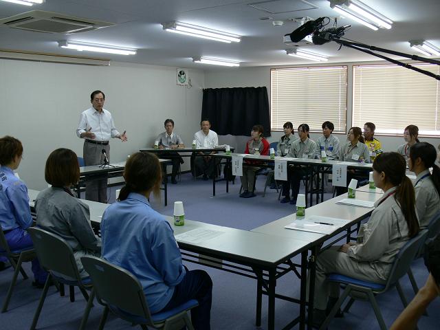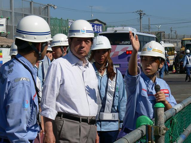 平成26年8月20日(水)、太田国土交通大臣は、建設業で活躍する女性を激励するため、東京外かく環状道路(千葉県区間)の工事現場を視察しました。工事現場で女性技術者から作業状況の説明を受けるとともに、働きやすい職場環境などについて、現場で活躍する女性と意見交換を行いました。