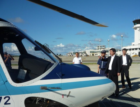 石垣航空基地所属のヘリコプターを視察する中原大臣政務官